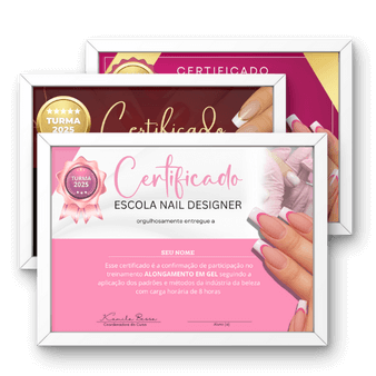 Ao concluir nosso curso online de alongamento de unhas, você não apenas adquire novas habilidades, mas também recebe 25 Certificados de Conclusão, testemunhando seu comprometimento e dedicação.